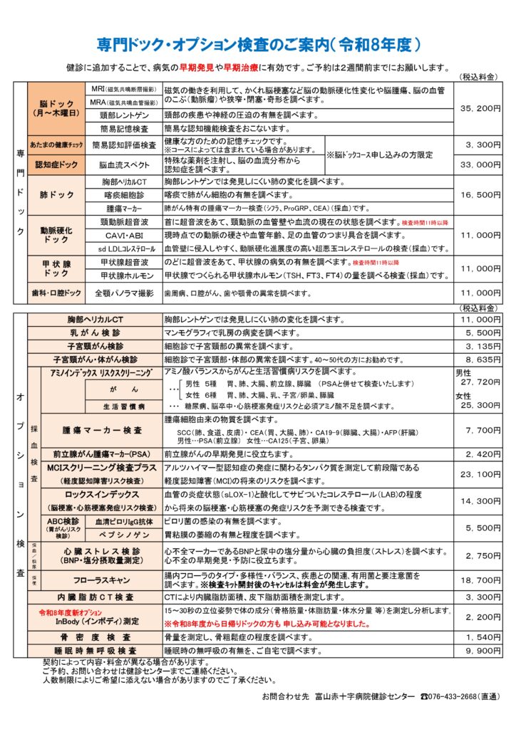 | コース | 一日ドック | 二日ドック | 脳ドック | |||
