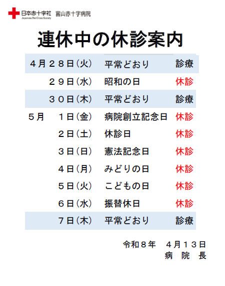 連休中の休診のご案内